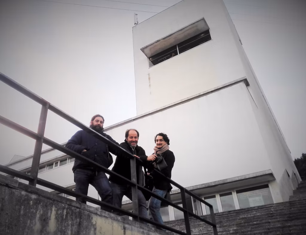 After the talk, Hugo Pires, Gabriel Falcao and Pedro Aibéo (left to right). Photo by Nelson Brito.